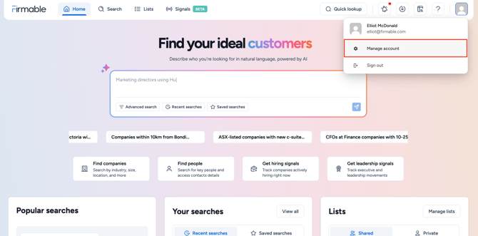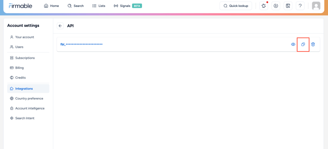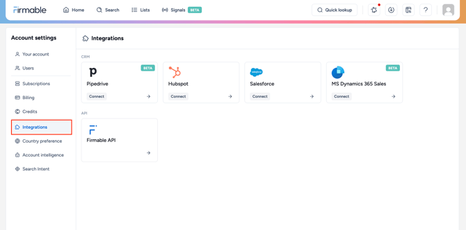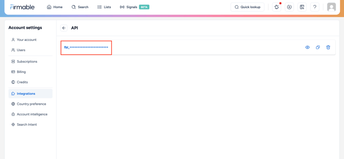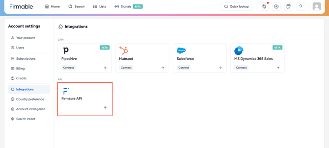 - You have the Admin, Manager or Integration role permission on Firmable.