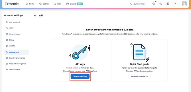 Create API key in Firmable