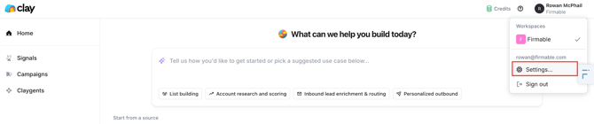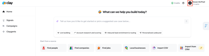 - Head over to your Clay workspace.