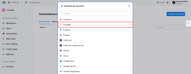 - Find Firmable under the "Connect an account" list.