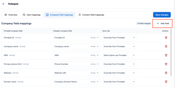 Note: During mapping, ensure that the data types match between HubSpot and Firmable so that the data can be pushed to HubSpot seamlessly without throwing any errors. Firmable supports Text, Number, and Boolean field types but for optimal compatibility, map to Text type fields in HubSpot.