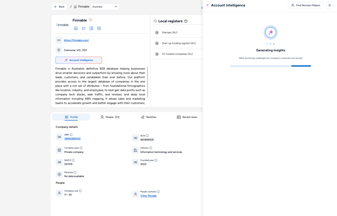 We hope this article has helped you understand how Account intelligence works. If you have any other questions, don't hesitate to contact us at support@firmable.com.