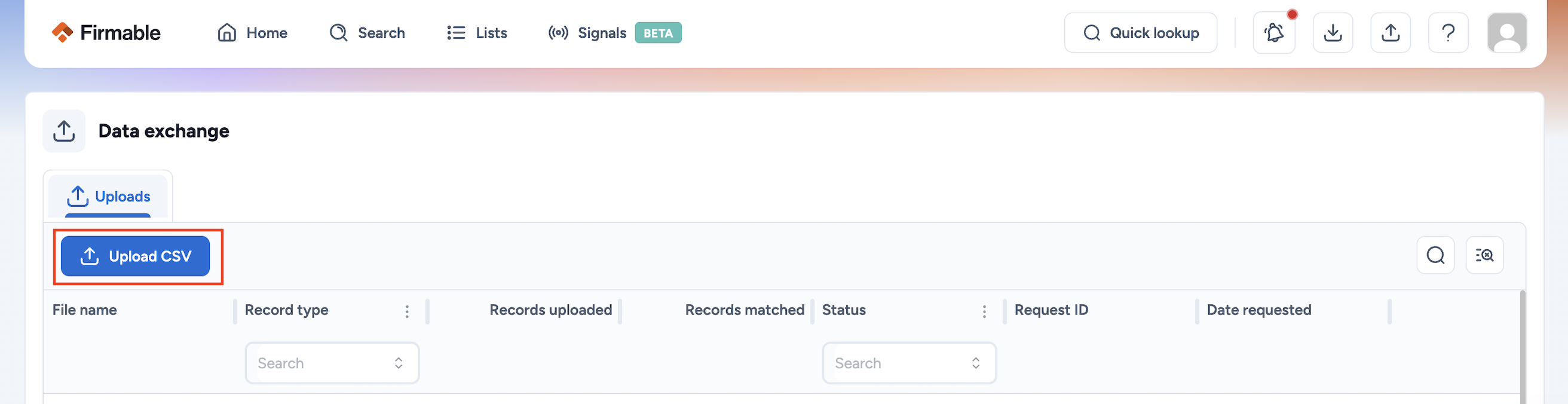 The data upload and enrichment exchange is coming soon for all our Teams and Teams Pro subscriptions. Let us know you're interested in getting early access by emailing support@firmable.com.